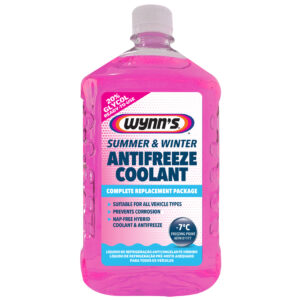 Wynn’s Summer & Winter 20% Antifreeze/Coolant is a premium ready-to-use, high performance coolant and antifreeze. It is a complete replacement package making it suitable for all vehicles; those that require either organic or inorganic coolants. It is formulated with a superior Euro specification additive package. MEG-based, NAP-free hybrid coolant/antifreeze, Freezing Point: - 7 °C (ASTM D1177), ASTM D3306, ASTM D4985, SAE J1034, BS 6580 (2010) and AFNOR NF R15-601.